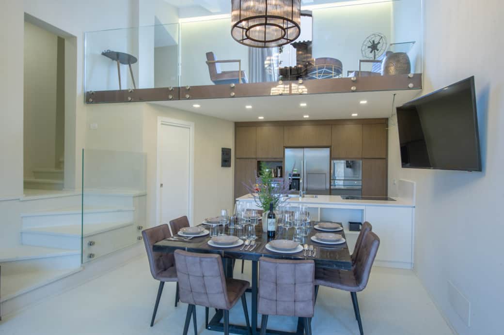 The interiors balance modern comfort with inviting design. The main floor features a stylish living room, a fully equipped kitchen, and a dining space that opens directly onto the terrace. A mezzanine level provides a cozy reading nook for quiet moments. A highlight of the villa is its private indoor plunge pool—a perfect spot to relax year-round with family or friends.