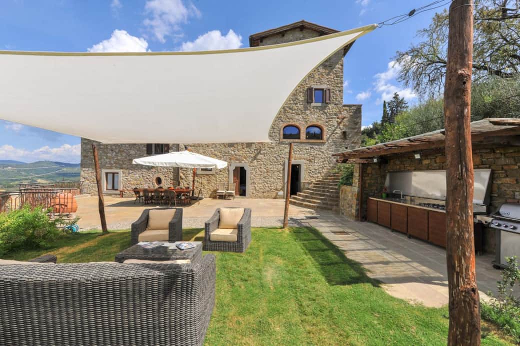 Villa Lucente’s landscaped gardens are beautifully maintained and offer several spaces to enjoy the Tuscan sunshine. The property includes a private plunge pool (5 m x 5 m, 59 cm deep) and a shaded pergola for outdoor dining with sweeping vineyard views. A separate elevated swimming pool (11 m x 3.5 m, 1.1 m deep) and a fully equipped outdoor kitchen with BBQ complete this exceptional setting.